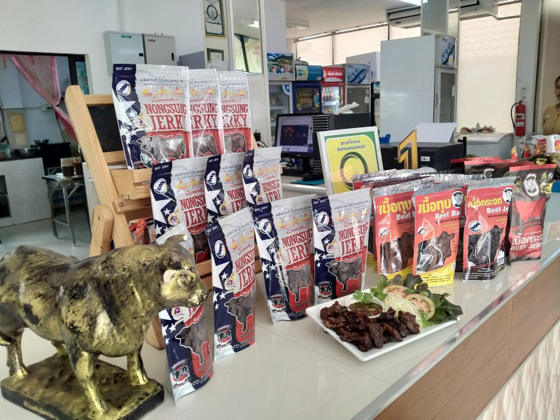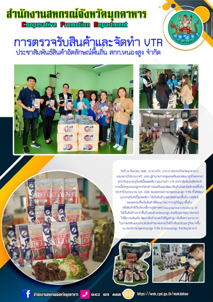 วันที่ 24 สิงหาคม 2566 นางบานใจ มามาก สหกรณ์จังหวัดมุกดาหาร มอบหมายให้นายภาสวี เกษร ผู้อำนวยการกลุ่มส่งเสริมและพัฒนาธุรกิจสหกรณ์ ตรวจรับถุงบรรจุภัณฑ์เนื้อแดดเดียว และถ่ายทำ VTR ประชาสัมพันธ์ผลิตภัณฑ์จากเนื้อโคขุนหนองสูงจากโครงการส่งเสริมและพัฒนาสินค้าเกษตรอัตลักษณ์พื้นถิ่น ประจำปีงบประมาณ พ.ศ. 2566 ของสหกรณ์การเกษตรหนองสูง จำกัด ที่ได้พัฒนาถุงบรรจุภัณฑ์เนื้อแดดเดียว ให้เป็นสินค้าเกษตรอัตลักษณ์พื้นถิ่น (ปศุสัตว์) ของสหกรณ์ซึ่งเป็นสินค้าที่มีคุณภาพมาจากภูมิปัญญาพื้นถิ่น หรือสินค้าที่เป็นสิ่งบ่งชี้ทางภูมิศาสตร์ (Geographical Indications: GI) ให้เป็นสินค้าประจำพื้นถิ่นของอำเภอหนองสูง ส่งเสริมและพัฒนาสหกรณ์ให้มีความเข้มแข็ง พัฒนาสินค้าเกษตรให้มีมูลค่าสูง เพิ่มขีดความสามารถในการแข่งขันและยกระดับสินค้าของสหกรณ์ให้เป็นที่ยอมรับและรู้จักมากขึ้น ณ สหกร์การเกษตรหนองสูง จำกัด อำเภอหนองสูง จังหวัดมุกดาหาร