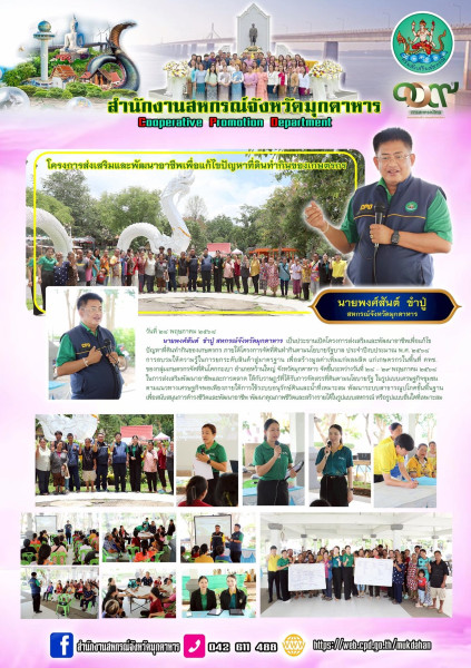 วันที่ ๒๘ พฤษภาคม ๒๕๖๘ นายพงศ์สันต์ ขำปู่ สหกรณ์จังหวัดมุกดาหาร เป็นประธานเปิดโครงการส่งเสริมและพัฒนาอาชีพเพื่อแก้ไขปัญหาที่ดินทำกินของเกษตรกร ภายใต้โครงการจัดที่ดินทำกินตามนโยบายรัฐบาล ประจำปีงบประมาณ พ.ศ. ๒๕๖๘ การอบรมให้ความรู้ในการยกระดับสินค้าสู่มาตรฐาน เพื่อสร้างมูลค่าเพิ่มแก่ผลผลิต แก่เกษตรกรในพื้นที่ คทช. ของกลุ่มเกษตรกรจัดที่ดินโคกกะเบา อำเภอหว้านใหญ่ จังหวัดมุกดาหาร จัดขึ้นระหว่างวันที่ ๒๘ - ๒๙ พฤษภาคม ๒๕๖๘ ในการส่งเสริมพัฒนาอาชีพและการตลาด